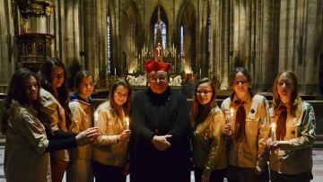 Předání světla kardinálovi proběhlo docela hladce, jen za začátku byl problém najít dvířka. Po zapálení hlavní svíce jsme se vydaly k betlému, zde jsme měly své pole působnosti. Již cestou tam jsme se usmívaly do desítek foťáku a kamer. Po dlouhém focení jsme rozdaly pár rozhovorů a s potřesením levice s Josém jsme odcházely domu s dobrým pocitem.