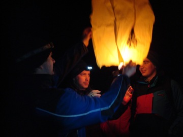 Po cestě jsme ještě vypustili další lampión, který však nechtěl odstartovat a tak byl skartován a zničen. Jakoby tato událost byla předzvěstí další části cesty.