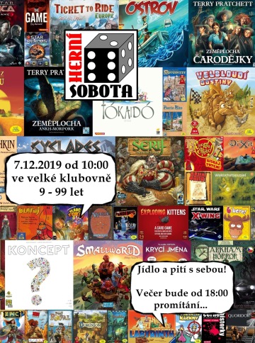 Herní sobota je zase tady! A co na vás čeká? Velké množství deskových a karetních her, banda nadšených hráčů, dobré jídlo a večer již tradiční promítání nějakého filmu. Neváhejte a přijďte!