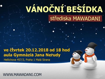Vážení rodiče a přátelé, srdečně vás zveme na tradiční vánoční besídku, která se koná ve čtvrtek 20. prosince od 18.00 v aule gymnázia Jana Nerudy. Můžete se těšit na herecká vystoupení jednotlivých oddílů, občerstvení a především na správnou vánoční atmosféru. Informace ohledně srazu účinkujících obdržíte od vedoucích schůzek.